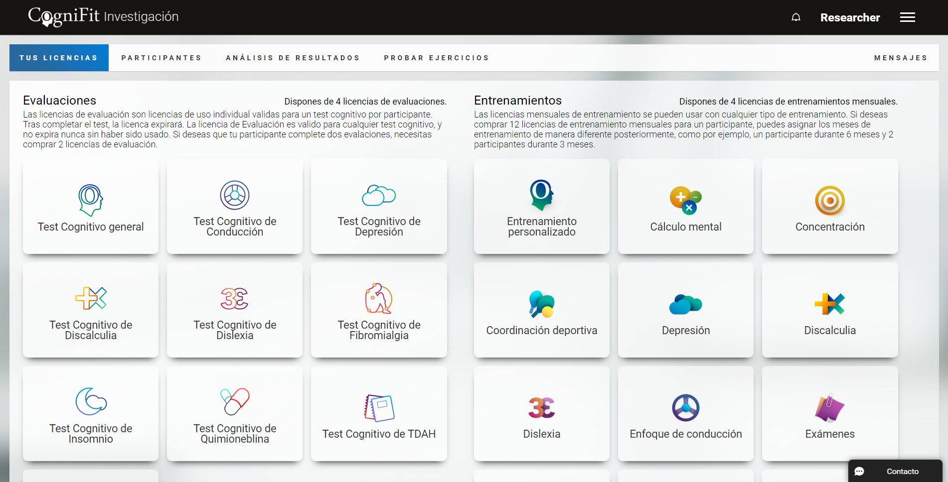 ¡Bienvenido a CogniFit! ¡Bienvenido a CogniFit para investigadores! CogniFit Healthcare ¡Impulsa tu Empresa con CogniFit! CogniFit Employee Wellbeing Distribuya CogniFit a las empresas Potencia a tu equipo